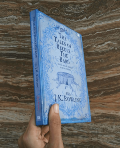Buku pertama adalah The Tale of Beedle the Bard yang ditulis oleh J.K. Rowling. Selain serial Harry Potter, serial buku anak-anak ini juga berhasil menjadi buku yang laris sepanjang masa. Namun, buku ini hanya ada tujuh salinan tangan dengan enam di antaranya diberikan kepada editor Rowling dan teman-temnnya. Sementara salinannya yang ketujuh dilelang dan mampu terjual dengan harga $3,98 atau seharga Rp55 miliar sehingga menjadikannya sebagai buku anak termahal yang pernah dibuat serta manuskrip modern yang paling langka.