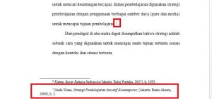 - Menunjukkan referensi atau sumber rujukan dari kutipan penyusunan daftar bacaan pada naskah.
