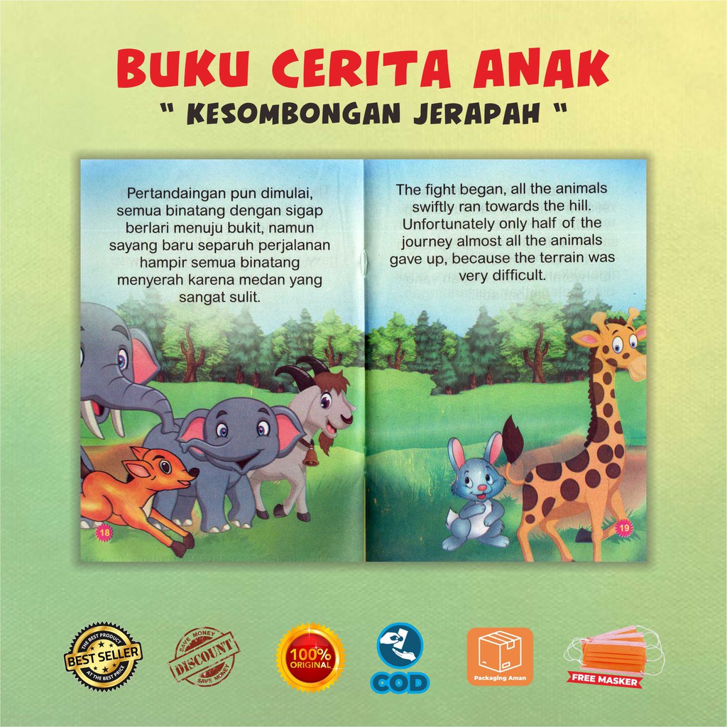 Di hutan, jerapah adalah hewan yang sering kali berbuat semena-mena kepada penghuni lainnya. Kancil pun kesal melihat perilaku jerapah. Kancil lalu menantang jerapah adu lari dengannya. Jerapah menyanggupinya dengan sombong. Namun, di tengah lomba itu, jerapah tersandung ranting pohon hingga terluka.