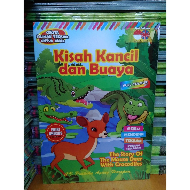 Hmm, ternyata si Kancil telah menipu buaya. Kamu jangan jadi pembohong seperti kancil, ya!