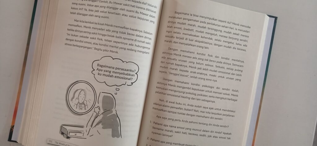Lebih lanjut, penulis mempermudah kita untuk memahami makna pemaafan dengan memberikan indikator sederhana yang harus selalu kita pegang teguh dalam proses memaafkan, yaitu ketika pikiran dan perasaan kita sudah berada pada kondisi netral atau positif saat mengingat peristiwa menyakitkan yang telah terjadi. Jika kita sudah berucap memaafkan tapi masih ada pikiran tidak netral, itu artinya kita masih belum memaafkan secara tuntas. Namun ketika kita merasa damai, tenang, biasa saja, atau perasaan nyaman lainnya maka selamat kita telah berhasil memaafkan dengan tuntas.